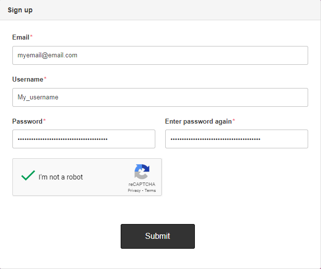 Затем установите флажок «Я не робот» и нажмите «Создать учетную запись». Ваша учетная запись будет создана, а затем вы сможете войти в систему, используя форму входа для отправки статей.